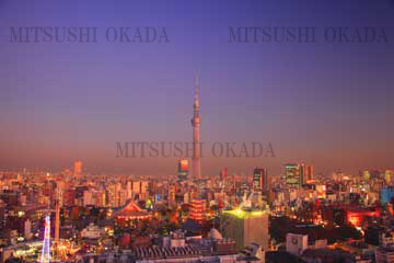 FUKEI-30499 薄暮の浅草の街並と東京スカイツリー 台東区 東京都 浅草で撮影 2011 12 12 |