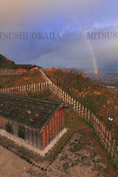 FUKEI-49872 朝の荒砥城跡と虹 長野県 千曲市 荒砥城跡で撮影 2014 11 13