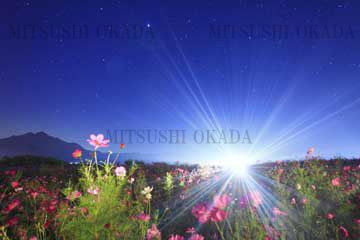 FUKEI-32287 コスモス畑のライトアップと星空 上田市 長野県 塩田平 東山観光農園で撮影 2011 9 30