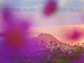 FUKEI-25725 コスモスのペアと夫神岳などの山並みと夕日 上田市 長野県 塩田平で撮影 2010年10月撮影